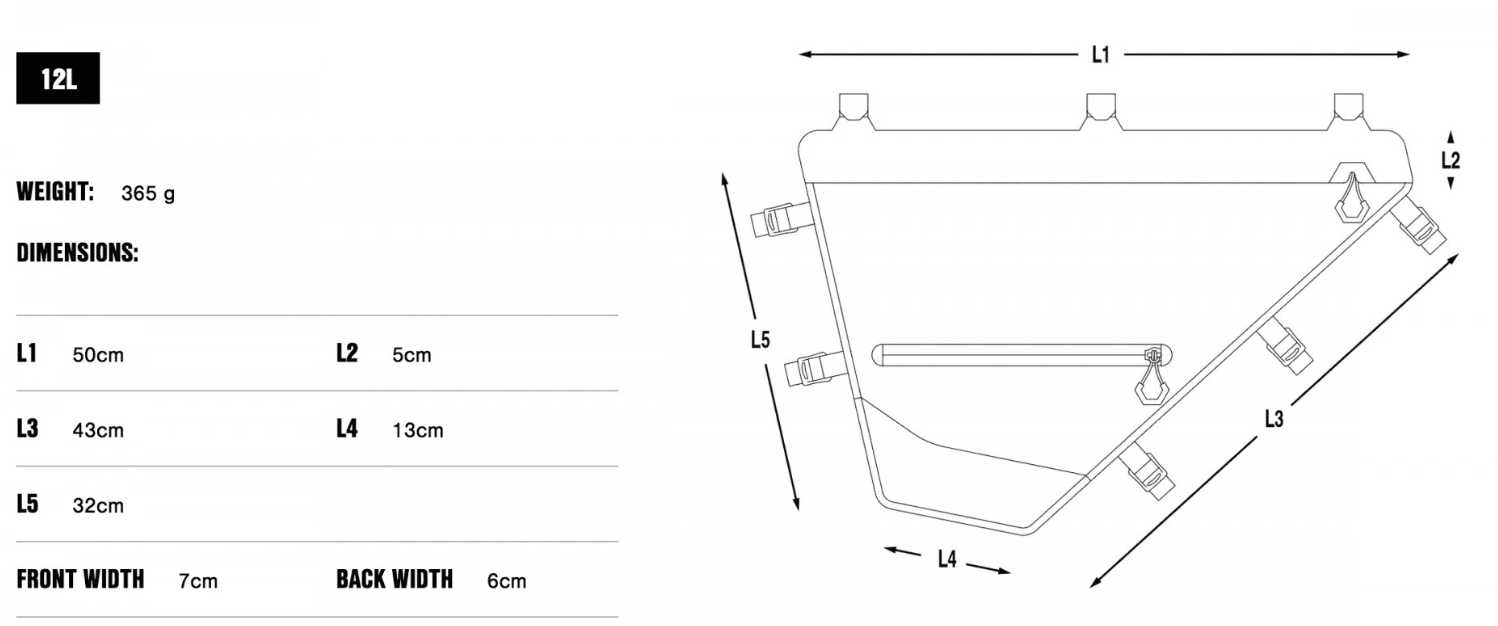 The Pack fits into the bike’s main triangle, providing a large space for bulky items — anything from cooking gear and tent poles, to heavy tools on longer expeditions and bikepacking trips. The resulting low centre of gravity is spread along a narrow, central plane, resulting in a Pack that has minimal effect on handling while offering a high volume of storage space.