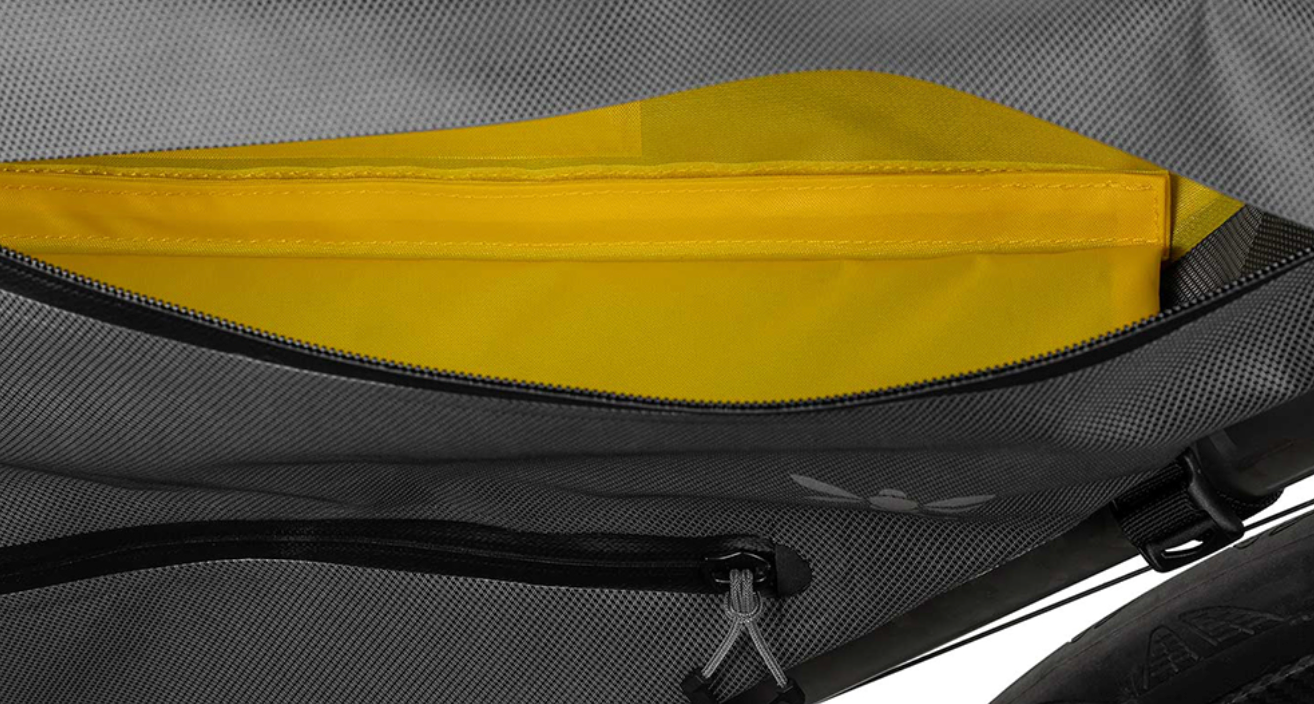 The Expedition Full Frame Pack is cut from a three-layer laminate fabric that was developed specifically for Apidura. The material is lightweight and is highly resistant to tears and abrasion. Notably, it’s welded together at the seams, creating a watertight seal that ensures the top tube bag remains completely waterproof.