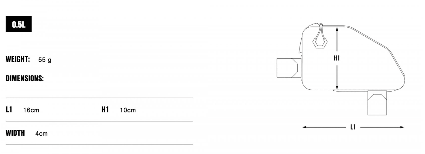 Available in 0.5L and 1L volumes, the smaller top tube bag is suited for storing bars and snacks, while the larger version can also accommodate smartphones and battery packs. It fastens securely to the top tube, opening and closing via an easy access one-finger zipper puller. Adjustable attachment points ensure that the bag is versatile enough for a range of different frames.