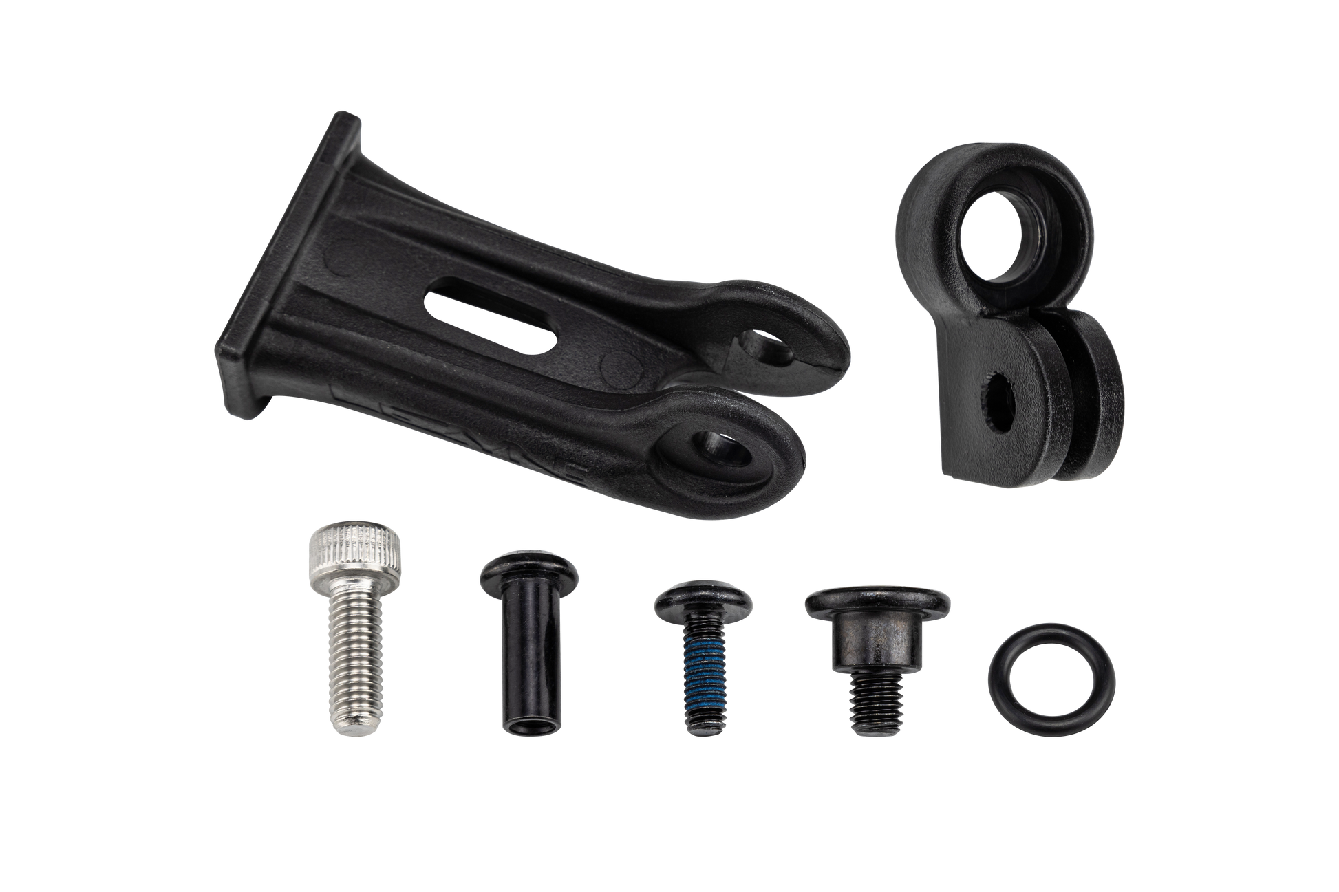 Includes bolt to mount bracket to fork crown, and, axle, bolt, and adapter to mount Lezyne light to bracket.